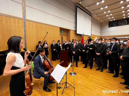 招待会上,蓝军和嘉宾一起,共同欣赏了垂秀夫大使的摄影作品,观看了日本弓道表演、小提琴·大提琴·钢琴演奏、茶道礼仪表演,饶有兴趣地品尝了官邸料理师渡边聪志现场制作的寿司,体验了丰富多彩的日本文化。
