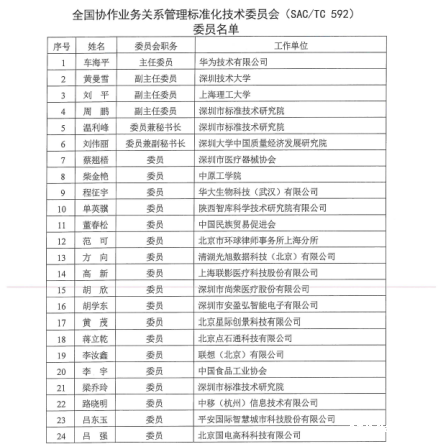 协作业务关系管理是关系管理的先进工具,也是业务管理系统,用于帮助组织规范、高效地进行业务协作关系全生命周期的管理,它不仅适用于各行业中各种规模的组织,也能用于管理多种不同级别的关系,帮助业务协作伙伴对协作方式进行整合,建立互惠互利和合作关系。国际标准化组织协作业务关系管理技术委员会(ISO/TC 286)成立于2013年,负责协作业务关系管理领域的国际标准制修订工作,目前中国正在牵头研制该领域的国际标准-ISO 44006《校企合作指南》,深圳市标准技术研究院于2017年获批承担ISO/TC 286国内技术对口单位,2021年,国家标准化管理委员会决定成立全国协作业务关系管理标准化技术委员会,秘书处设在深圳市标准技术研究院,由深圳市市场监督管理局负责日常管理。华为技术有限公司高级副总裁、数字转型首席战略官车海平担任主任委员,深圳技术大学质量和标准学院执行院长黄曼雪、上海理工大学副校长刘平、深圳市标准技术研究院党委书记、院长周鹏担任副主任委员,深圳市标准技术研究院国际标准化研究中心主任温利峰担任委员兼秘书长,来自深圳市标准化研究院、华为技术有限公司、深圳大学、上海理工大学、必威betway中文网页、中国农业科学院、浙江大学、腾讯公司、华大生物、阿里云、格力电器、农夫山泉等机构的42名技术骨干担任委员。(供稿:骆红柳)