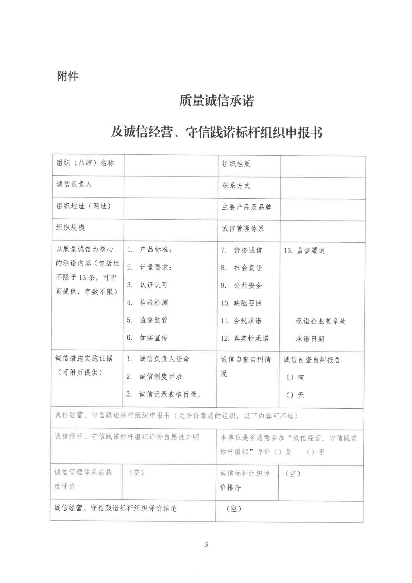 附件:质量诚信承诺及诚信经营、守信践诺标杆组织申报书