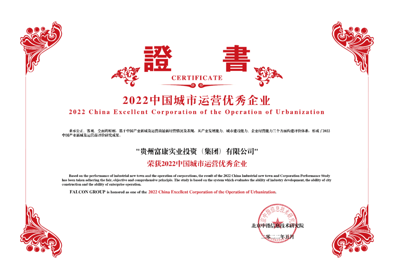 富康集团荣获“2022中国城市运营优秀企业”荣誉
