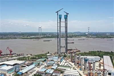 正在建设中的龙潭长江大桥位于南京长江四桥与润扬长江大桥之间,北接扬州仪征市,南接南京市、镇江句容市,双向六车道,设计时速100公里,全长4925米。新华社记者 杨磊 摄
