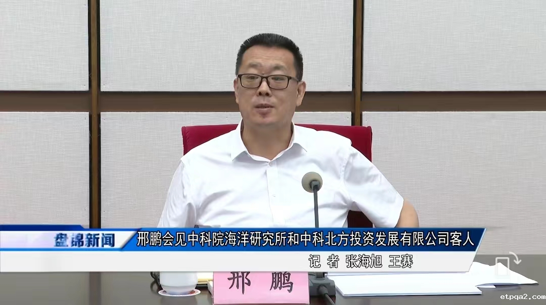 7月30日,盘锦市委副书记、市长邢鹏会见中科院海洋研究所研究员李鹏程和本会理事会主席团主席会员单位中科北方投资发展有限公司总经理陈华一行,就进一步深化合作进行座谈交流。