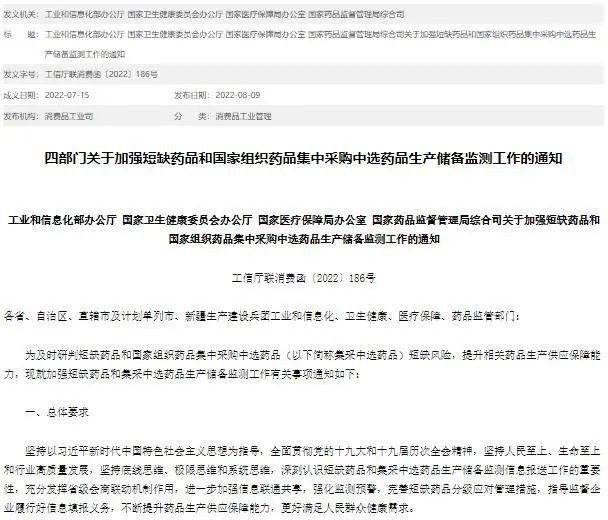 四部门:加强对短缺药品和集采中选药品生产储备监测