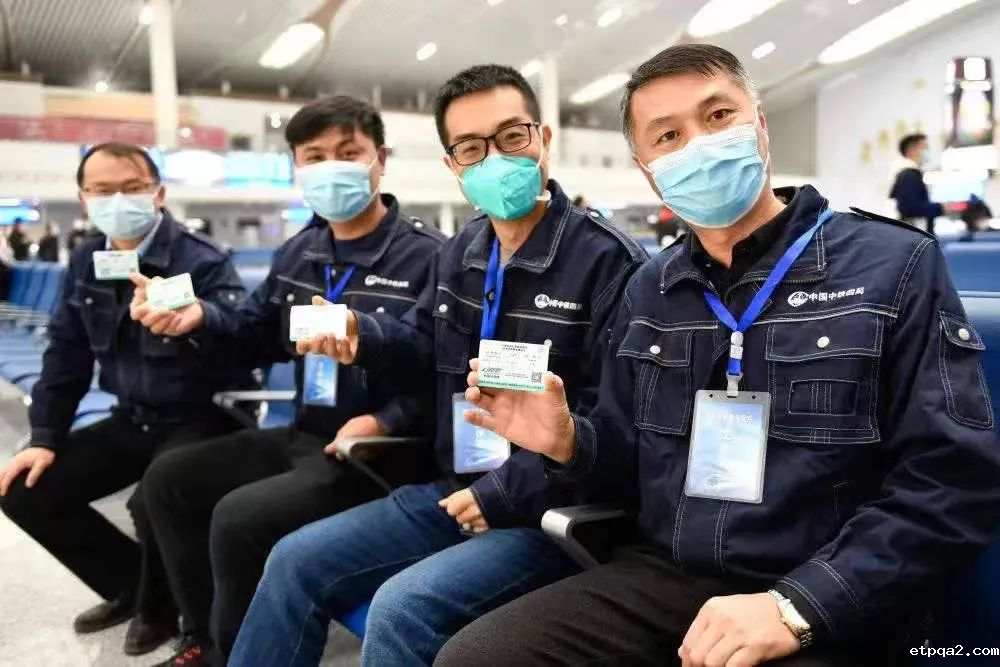 ▲朱明飞(右一)等四位参建员工首乘杭绍台铁路时的现场合影