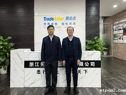 ▲浙江省商务厅党组书记、厅长韩杰(左),贸点点创始人、董事长陈良(右)