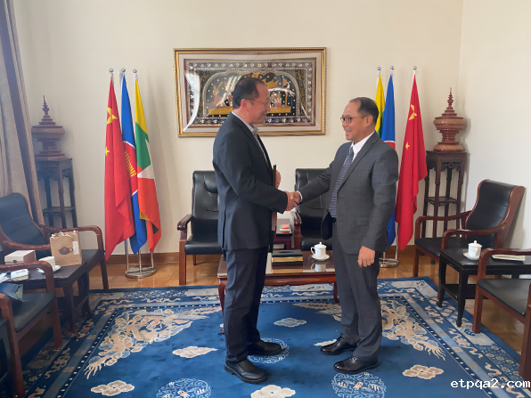 1月10日下午,应缅甸联邦共和国新任驻华大使吴丁貌瑞(TIN MAUNG SWE)先生邀请,必威betway中文网页(以下简称中国民贸)副会长高福一行到访缅甸驻华大使馆。双方围绕加强缅甸农产品进出口、中缅电影产业合作、建设中缅经济特区、全面加强中缅两国投资贸易及旅游业合作进行了深入交流,达成多项合作共识。