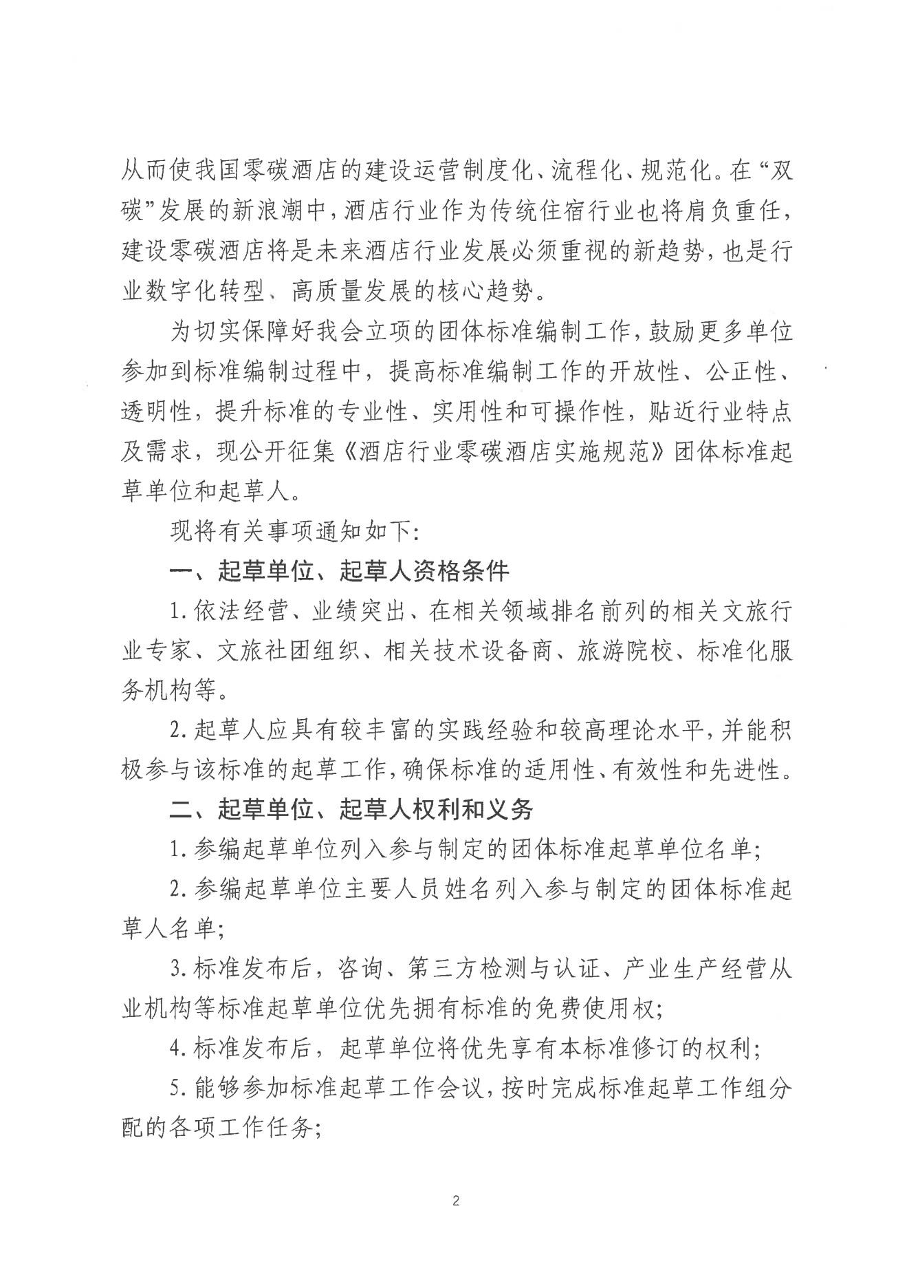 关于公开征集《酒店行业零碳酒店实施规范》团体标准起草单位和起草人的通知