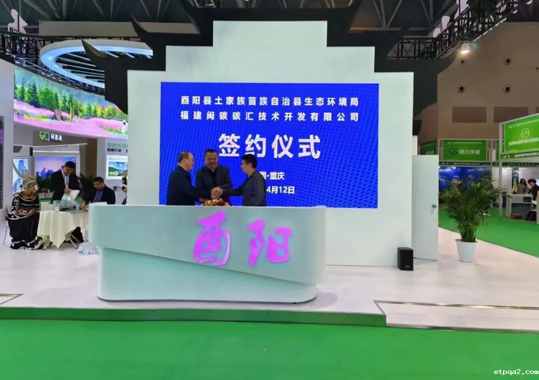 碳博会上,在中国民贸、酉阳县人民政府的支持下,本会会员单位福建闽碳碳汇技术开发有限公司与酉阳县生态环境局合作签约,酉阳县人民政府副县长熊伟参加签约仪式并见证,本次签约标志着双方在发展酉阳县碳汇方面合作正式启动。