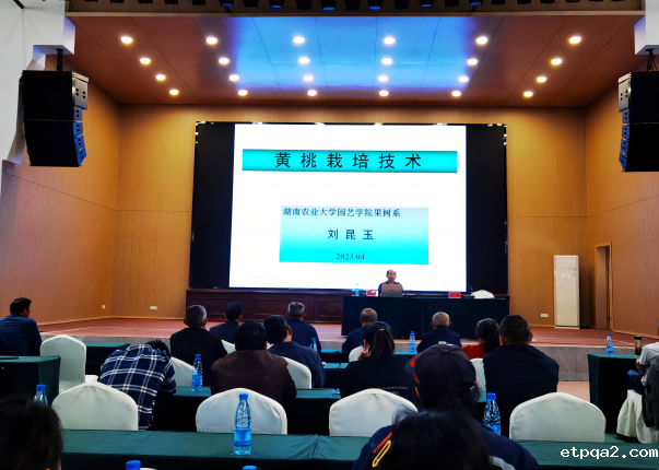 理论课上,刘教授从小水果的分布与生产现状、土壤的改良与施肥、枝干的整形与修剪、病虫害的预防与治疗等方面将专业的技术知识,用通俗易懂的语言,以图文并茂的形式深入浅出的为大家详细讲解了小水果种植的相关技术操作和注意事项。刘教授了解到很多果农对疏果工作抱有抵触情绪,着重强调了“黄桃着果率高,却往往因为载果量大而导致果实小、品质差和树体早衰。因此,合理疏果是实现优质、高产、高效的关键。”他引导广大种植户转变传统观念,健康科学栽培,配套专业技术,从而达到促进增收、提升品质的效果。