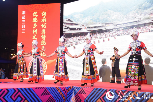 毛南族服装秀。人民网 王功孝摄