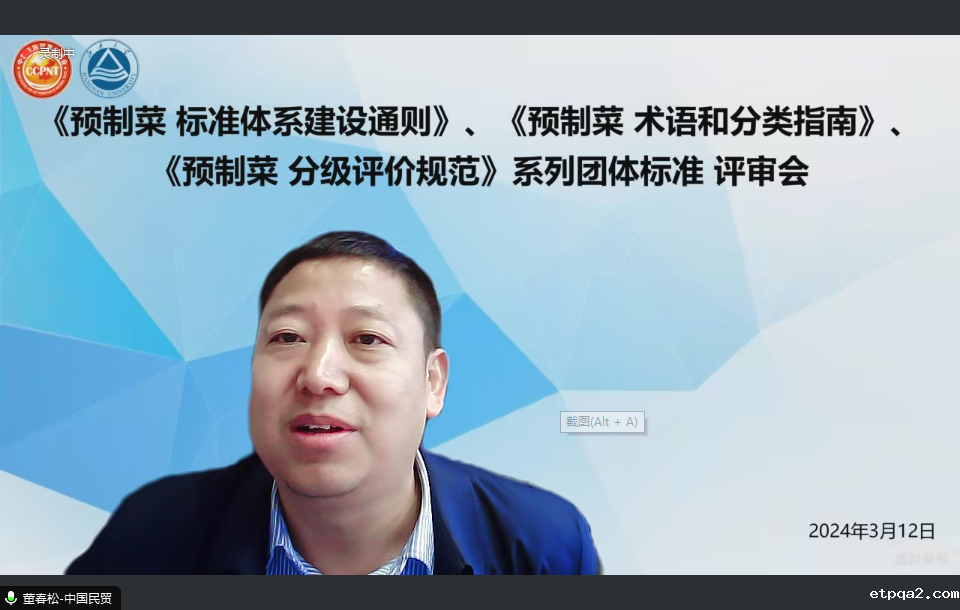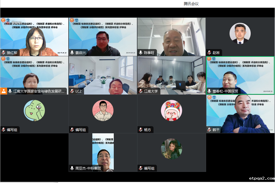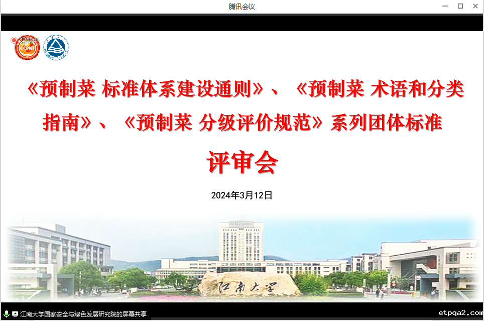 3月12日,由必威betway中文网页归口管理,由江南大学联合相关单位牵头立项和起草的《预制菜 标准体系建设通则》、《预制菜 术语和分类指南》、《预制菜 分级评价规范》系列团体标准审查会通过线上形式顺利召开。