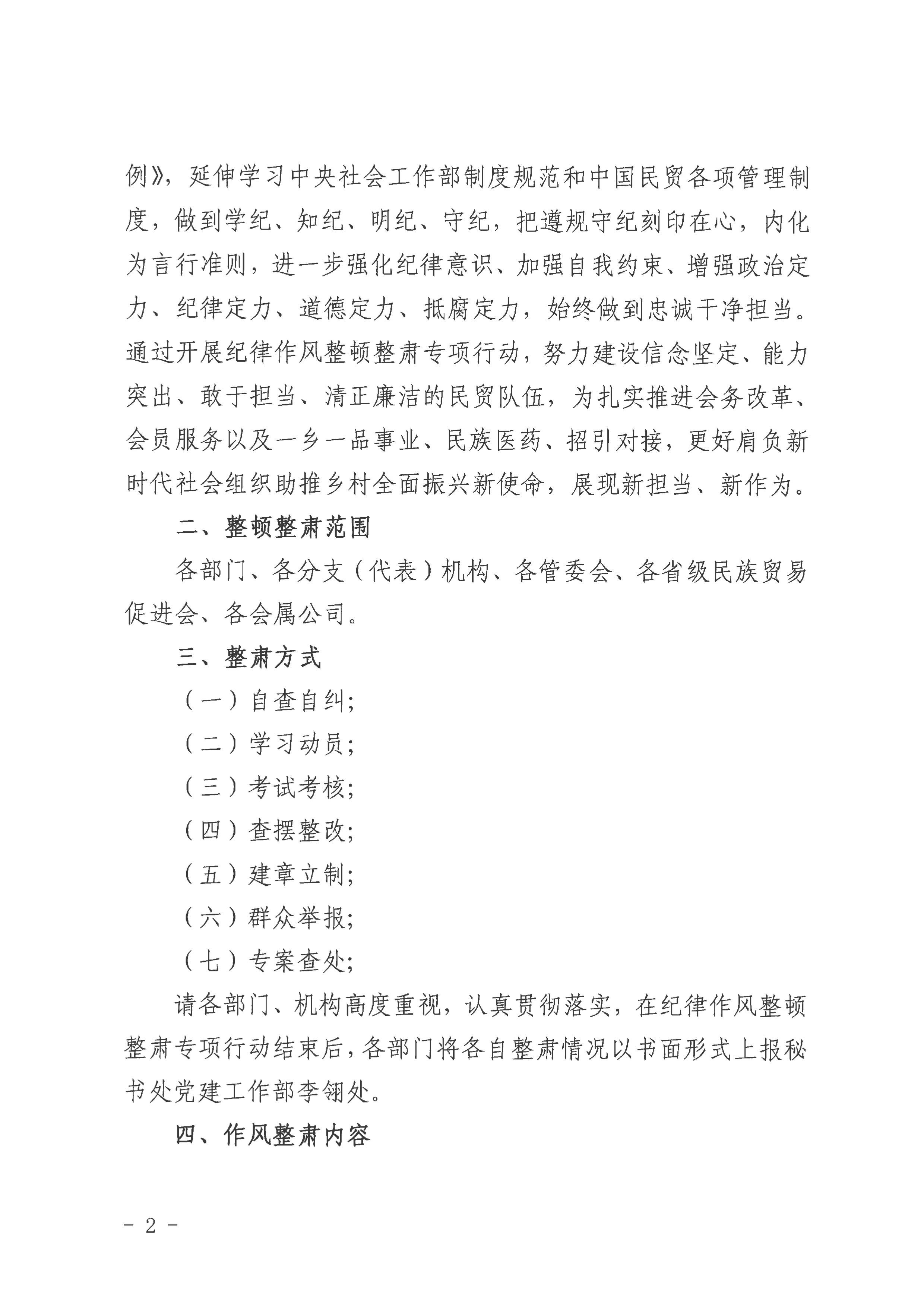 关于开展纪律作风整肃专项行动的通知