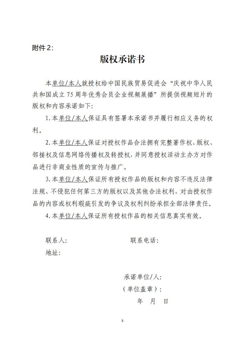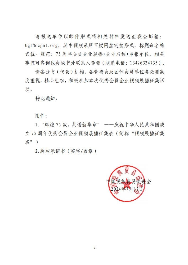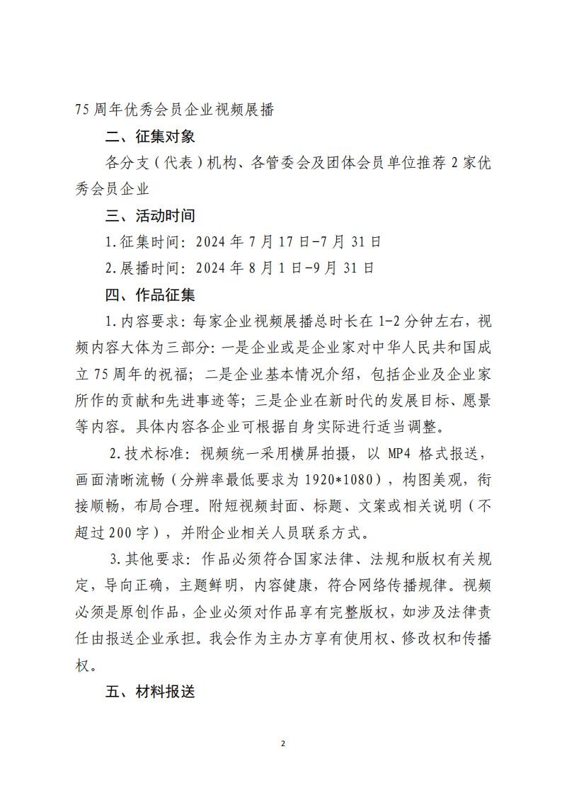 关于开展“庆祝中华人民共和国成立75周年优秀会员企业视频展播”视频征集的通知