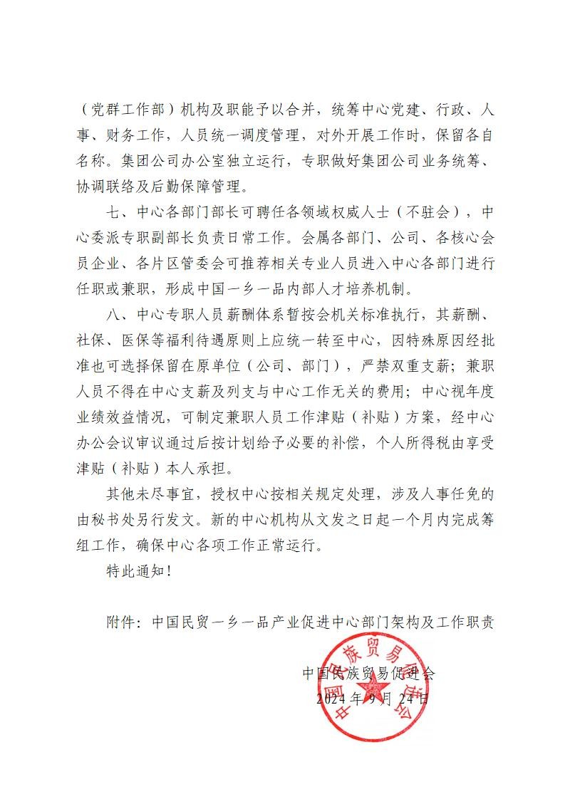关于全面调整“中国民贸betway必威西汉产业促进中心”管理体系和管理职能的通知