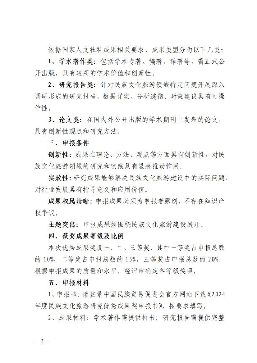 下载附件:关于组织申报2024年度中国民族文化与旅游发展研究优秀成果奖的通知