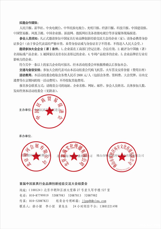 首届中国家具行业品牌创新经验交流大会暨《中国百位家具人风采》首发式邀请函